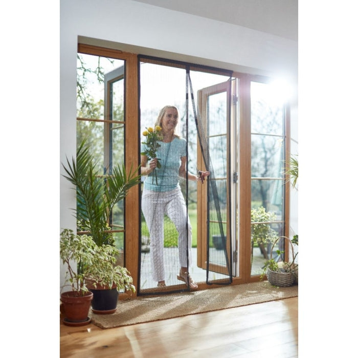 The Zero In® Magnetic Doorway Insect Curtain lets fresh air in and keeps flying and biting insects out. Includes complete installation kit for easy set-up with no need for specialist tools. Fits any standard hinged or sliding doorway up to 99 x 210cm.