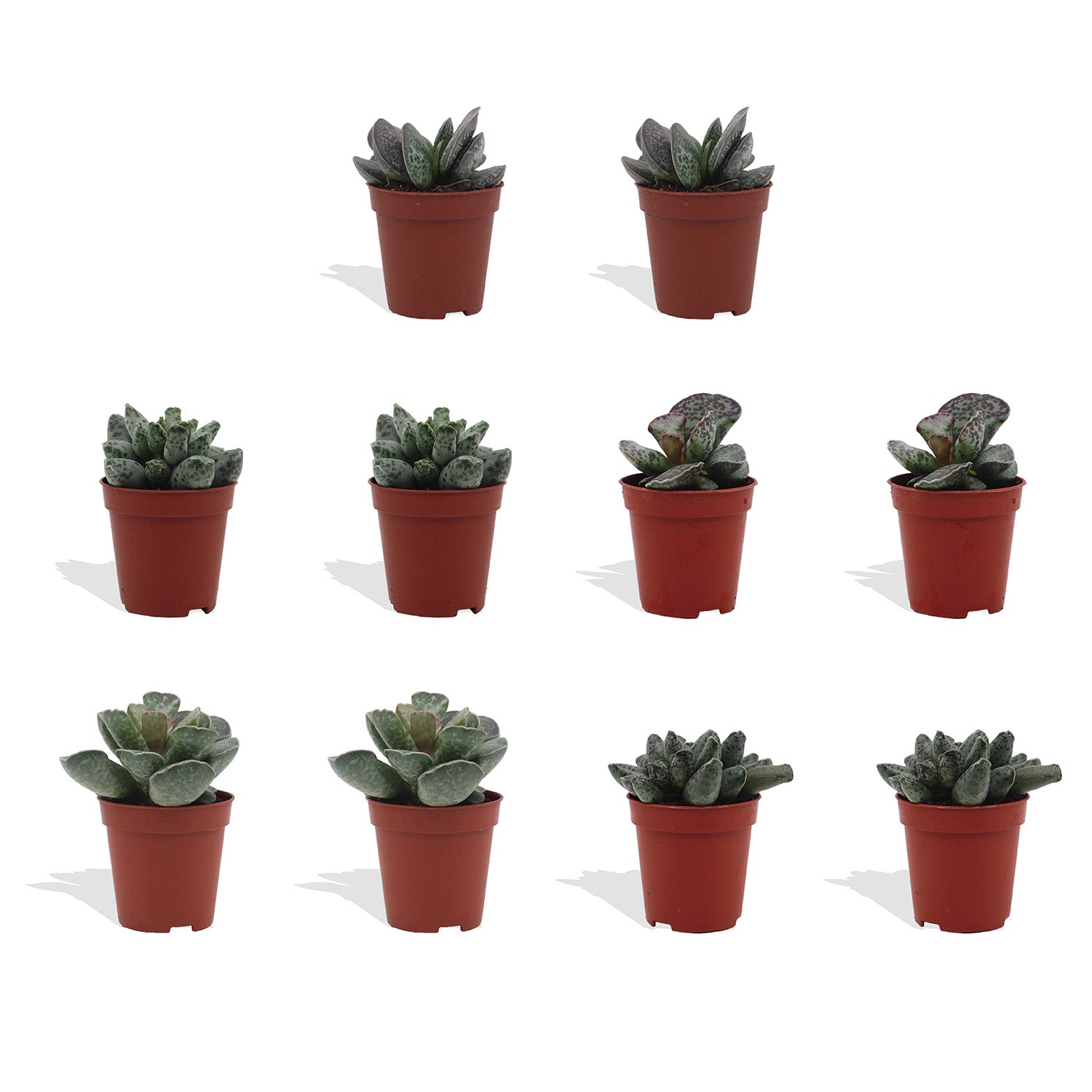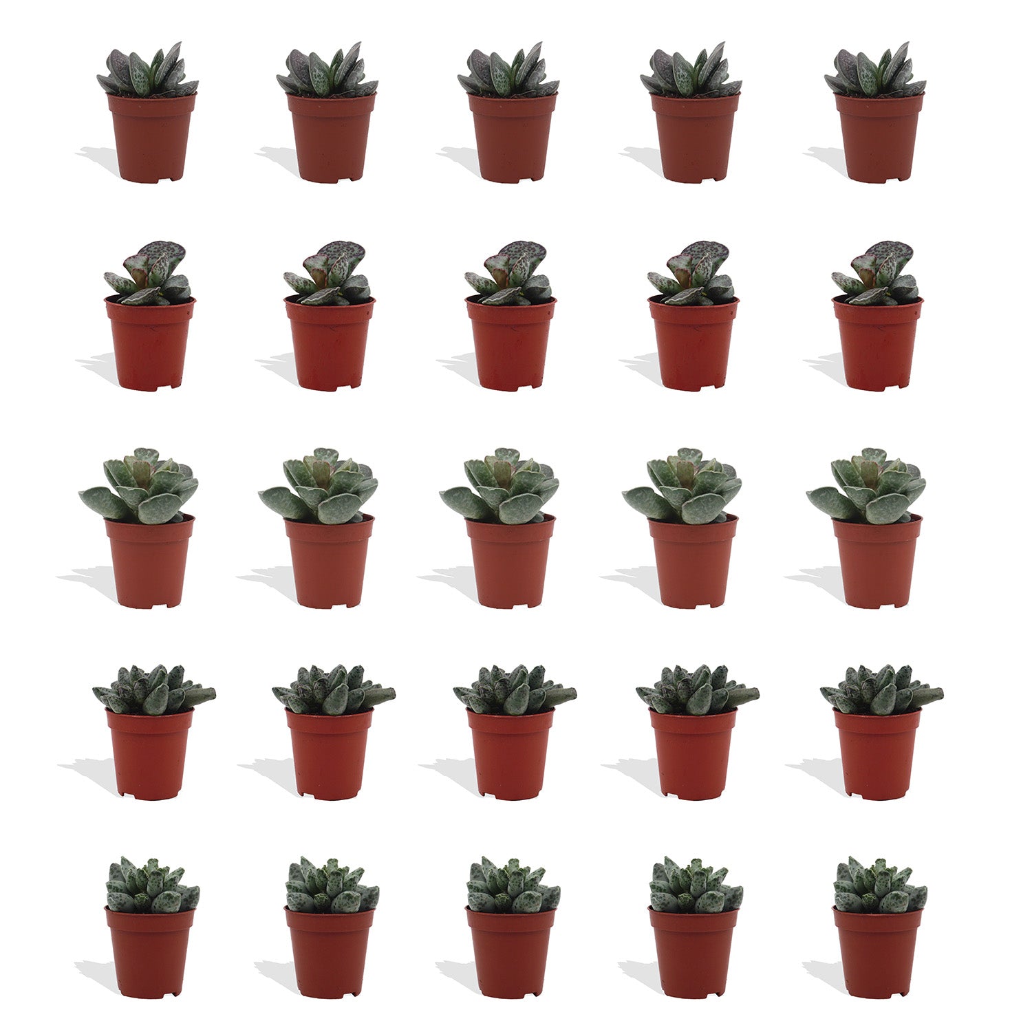 Onze boxen met Adromischus vetplanten bevatten een unieke mix van 5 verschillende Crassulaceae vetplanten, rechtstreeks afkomstig van een gespecialiseerde kweker. Deze Adromischus succulenten, met hun opvallende, vaak bonte of dikbladige groei, zijn perfecte blikvangers voor kleinere ruimtes zoals je bureau, vensterbank of in horecagelegenheden. Succulenten brengen direct een sfeervolle en natuurlijke uitstraling in je interieur. Daarnaast zijn deze vetplanten uiterst onderhoudsvriendelijk, waardoor ze ideaal zijn voor iedereen die weinig tijd heeft of geen groene vingers.